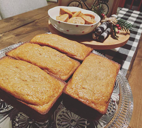 If baking in 9x5 Loaf pan, bake for 60-68 until top is golden. Mini Loaf pan 35-40 Minutes. Mini Muffins 25- 30 minutes